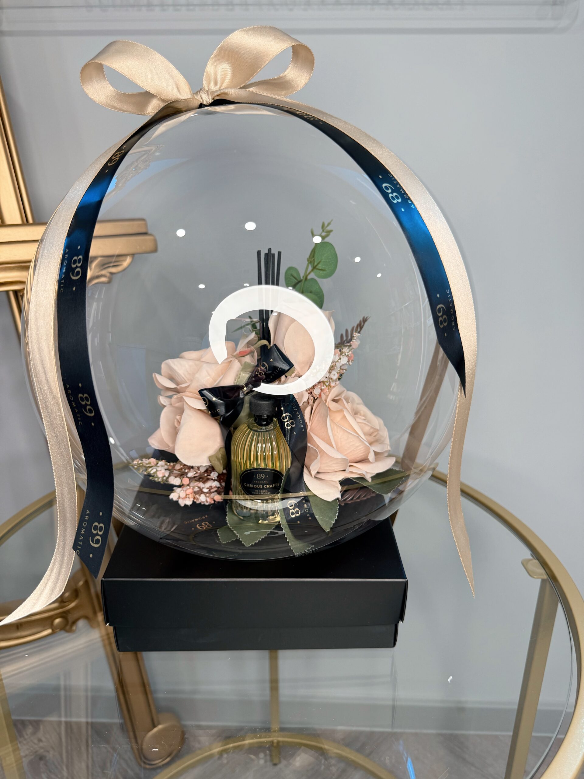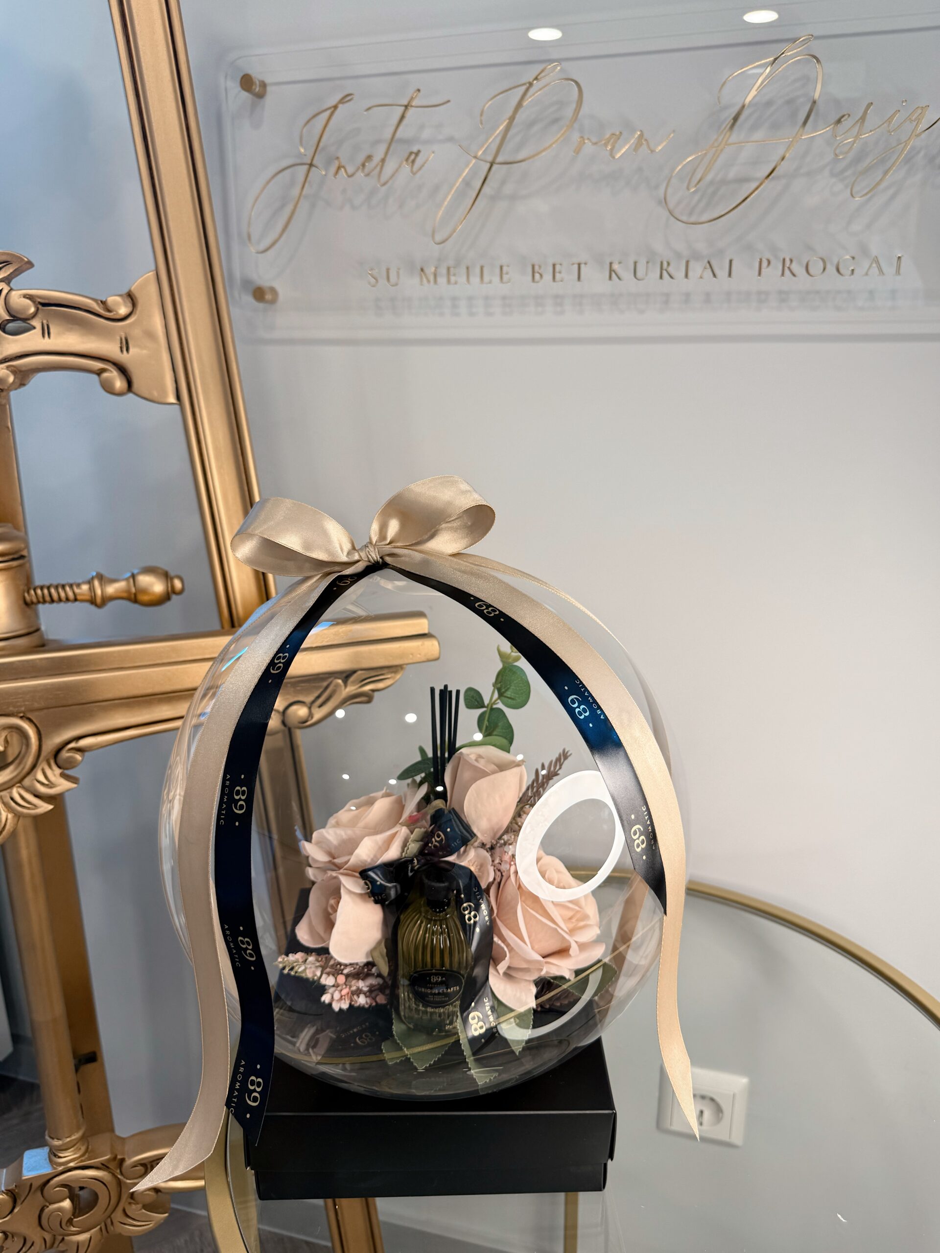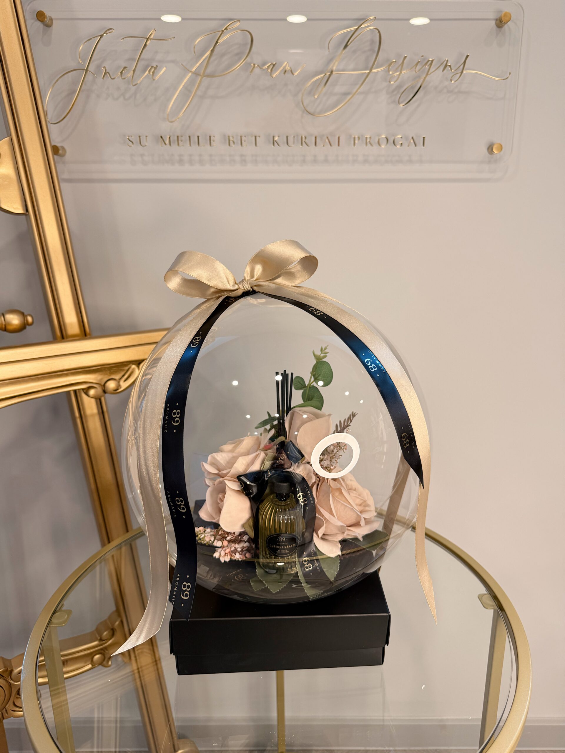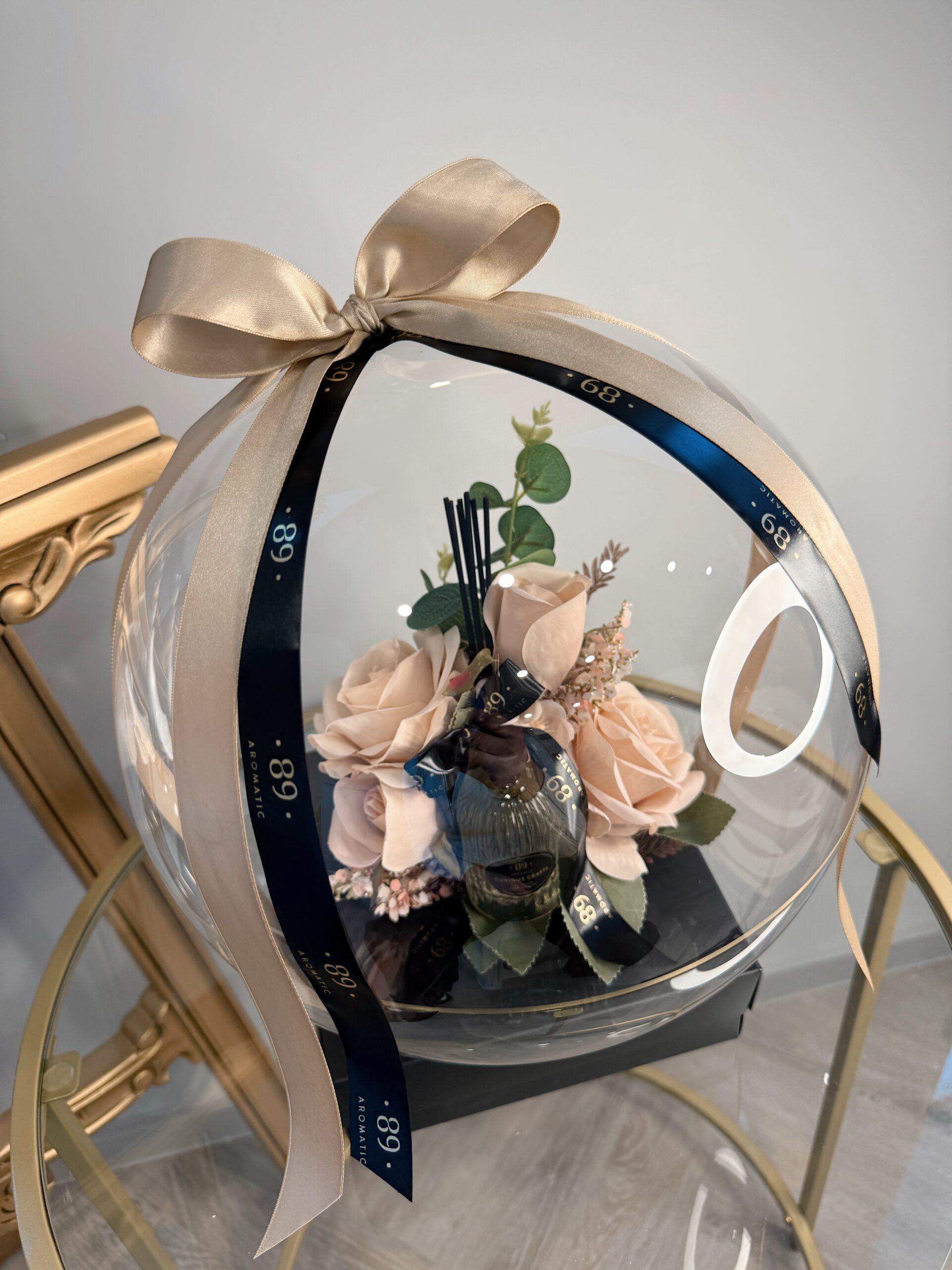 Galite rinktis iš įvairių aromatic 89 namų 50ml kvapų iš “Retro kolekcija” kuris bus gražiai supakuotas tarp gėlių baliono viduje. Juoda dovanų dėžutė atsidaro ir viduje gali laikyti smulkią papildomą dovaną kaip pinigai.