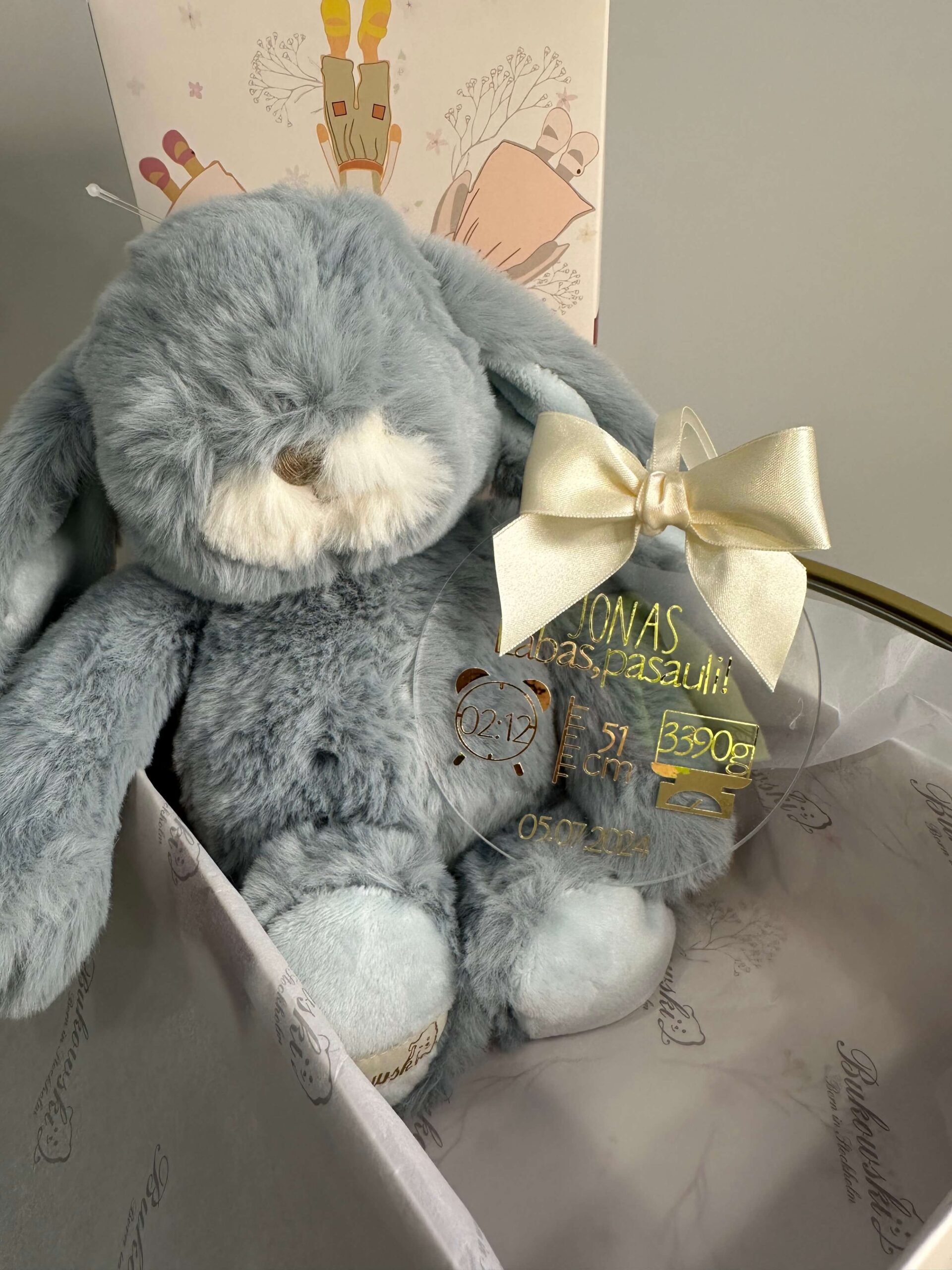 Nuostabi dovaną kūdikio sutiktuvėms ar gimtadieniui! Už papildoma mokestį galite pridėti akrilo stiklo diskelį su kūdikio gimimo informacija ar norima palinkėjimą. Tai kokybišką personalizuota dovanėlė!