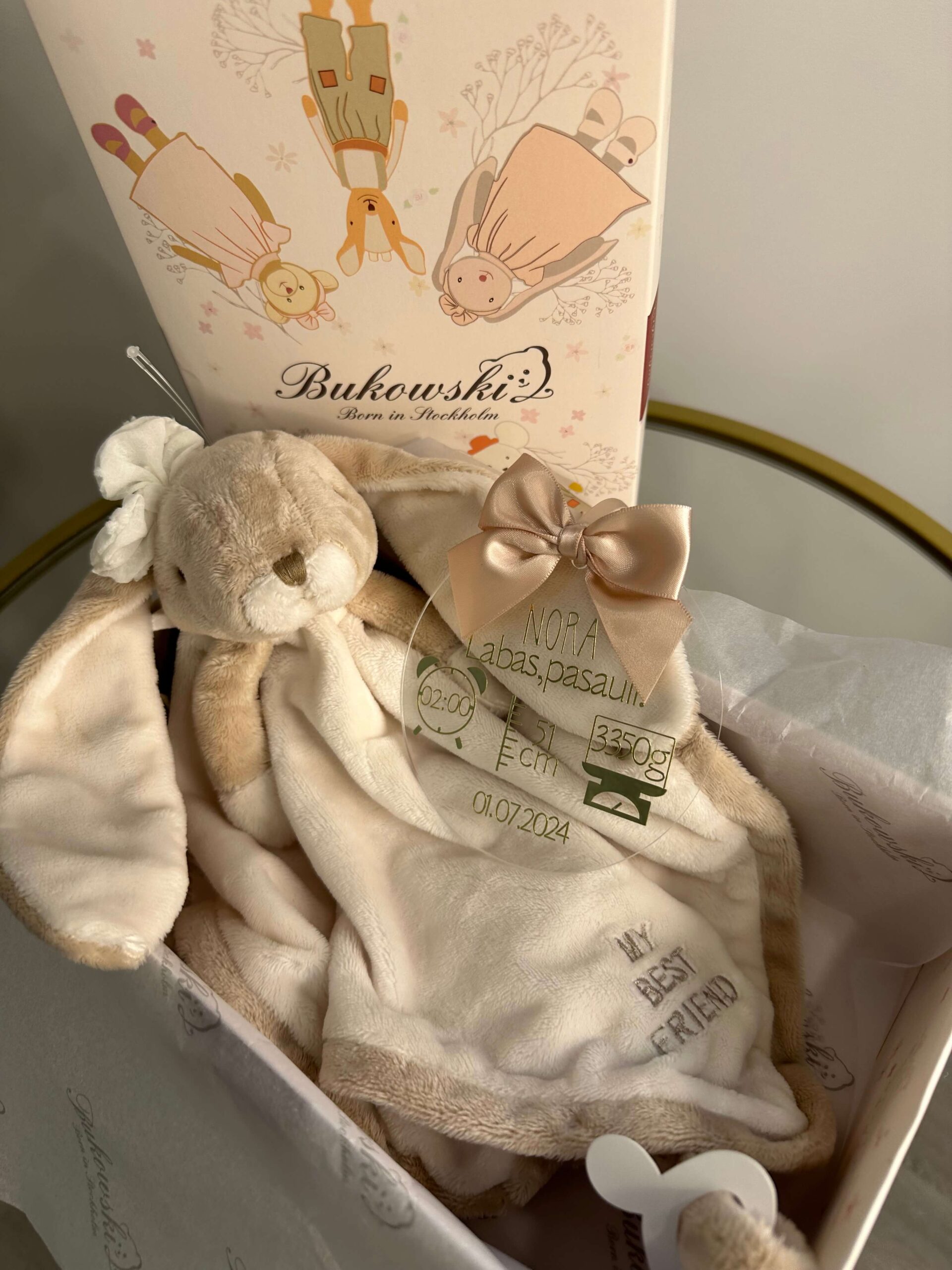Nuostabi dovaną kūdikio sutiktuvėms ar gimtadieniui! Už papildoma mokestį galite pridėti akrilo stiklo diskelį su kūdikio gimimo informacija ar norima palinkėjimą. Tai kokybišką personalizuota dovanėlė!