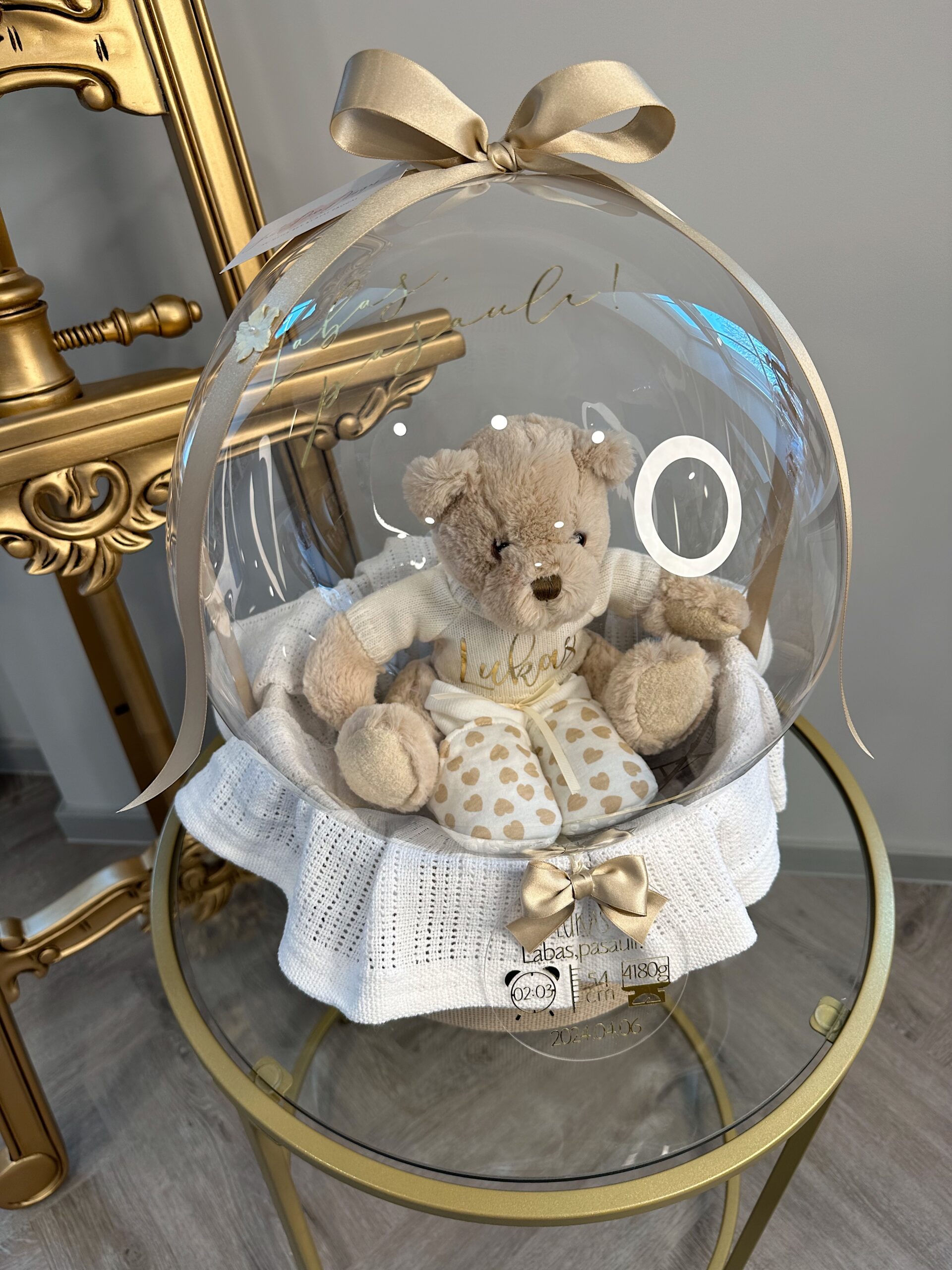 Dovana balione naujagimiui “Mano pirmasis meškutis” personalizuotas meškutis kuris bus puikus vaikystės prisiminimas!