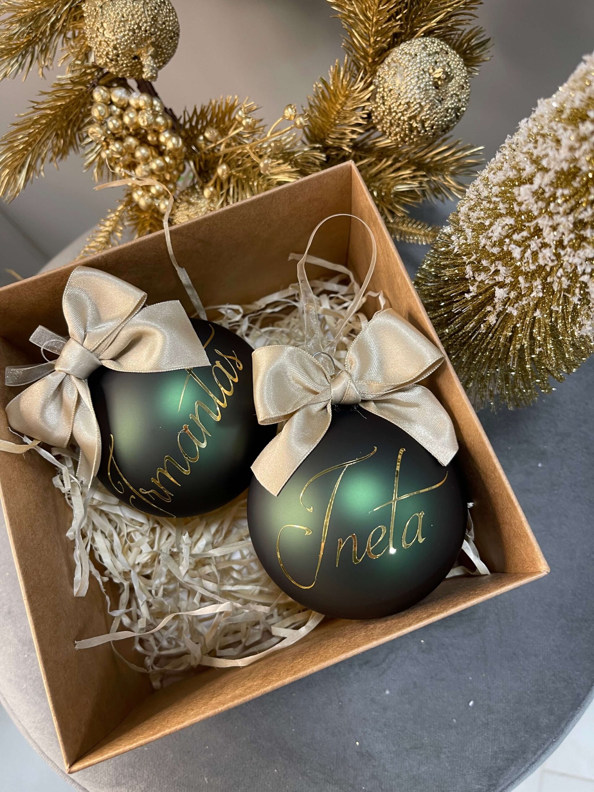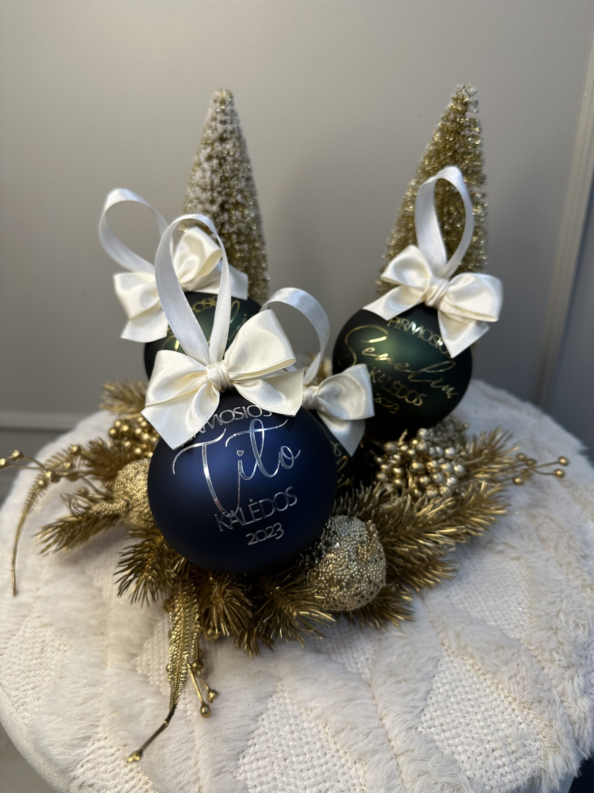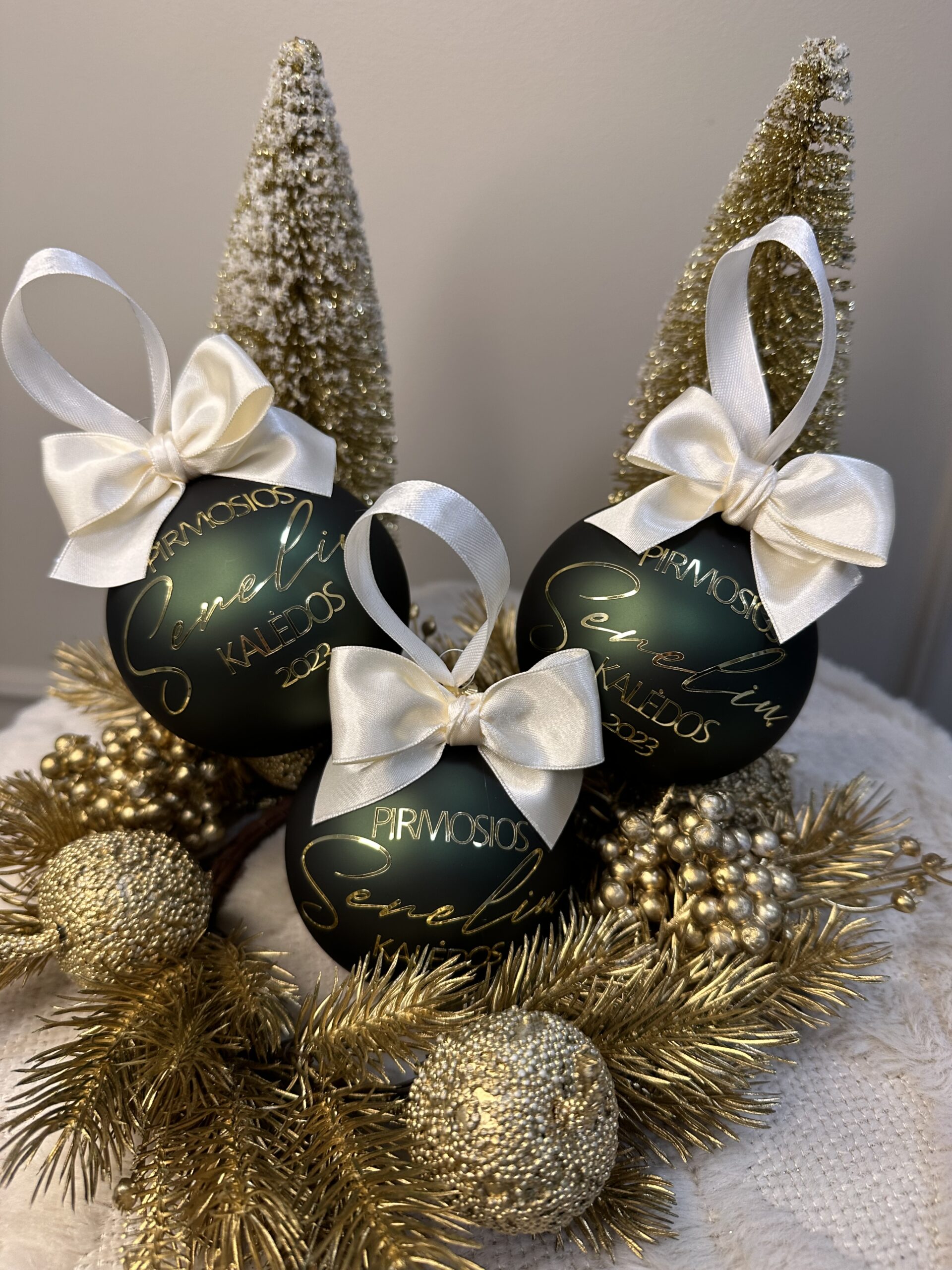 Žaisliukai pagaminti iš kokybiško stiklo, skersmuo 9cm ir visi supakuoti atskirai kaip dovaną. Tai simboliška bet be galo asmeniška Kalėdų dovaną.