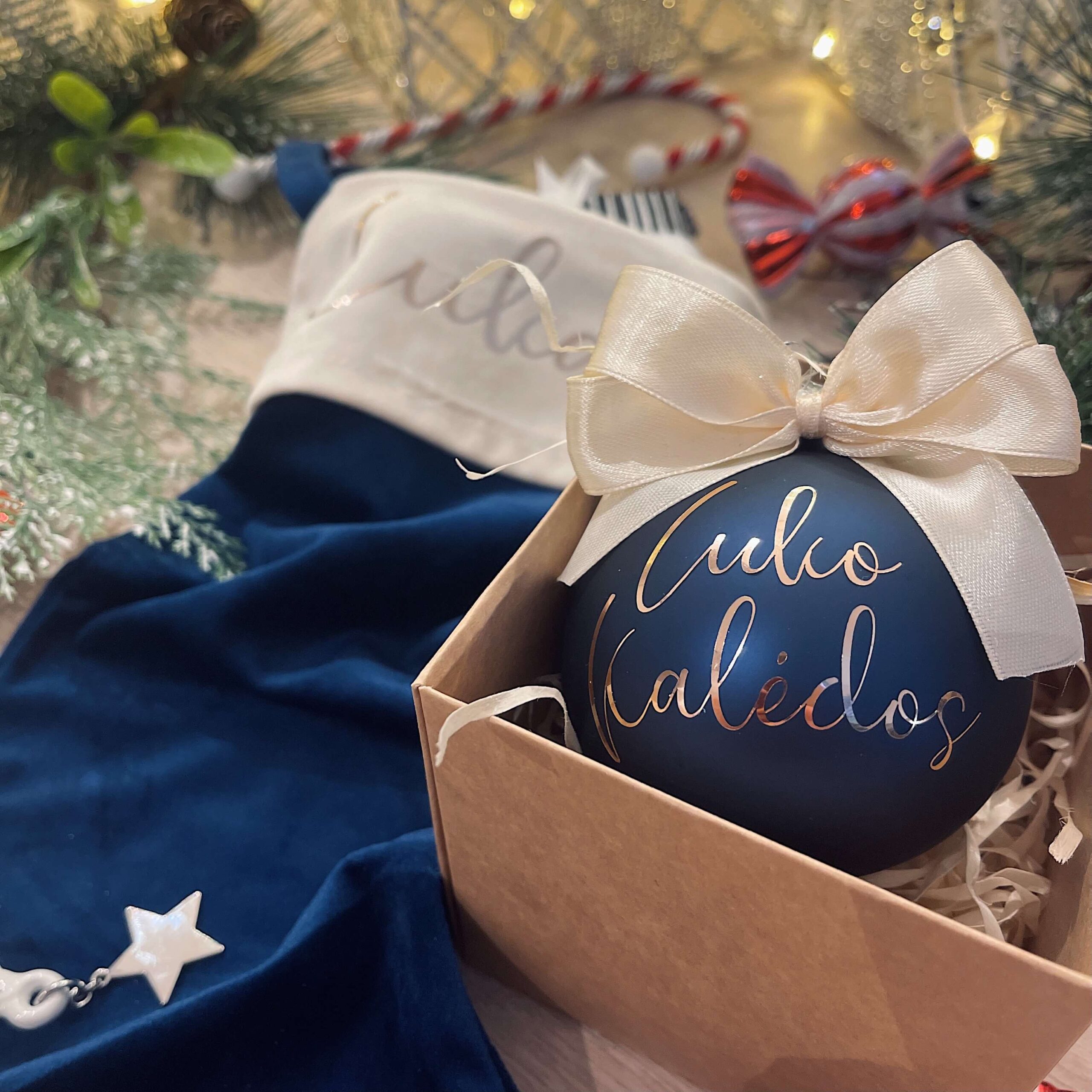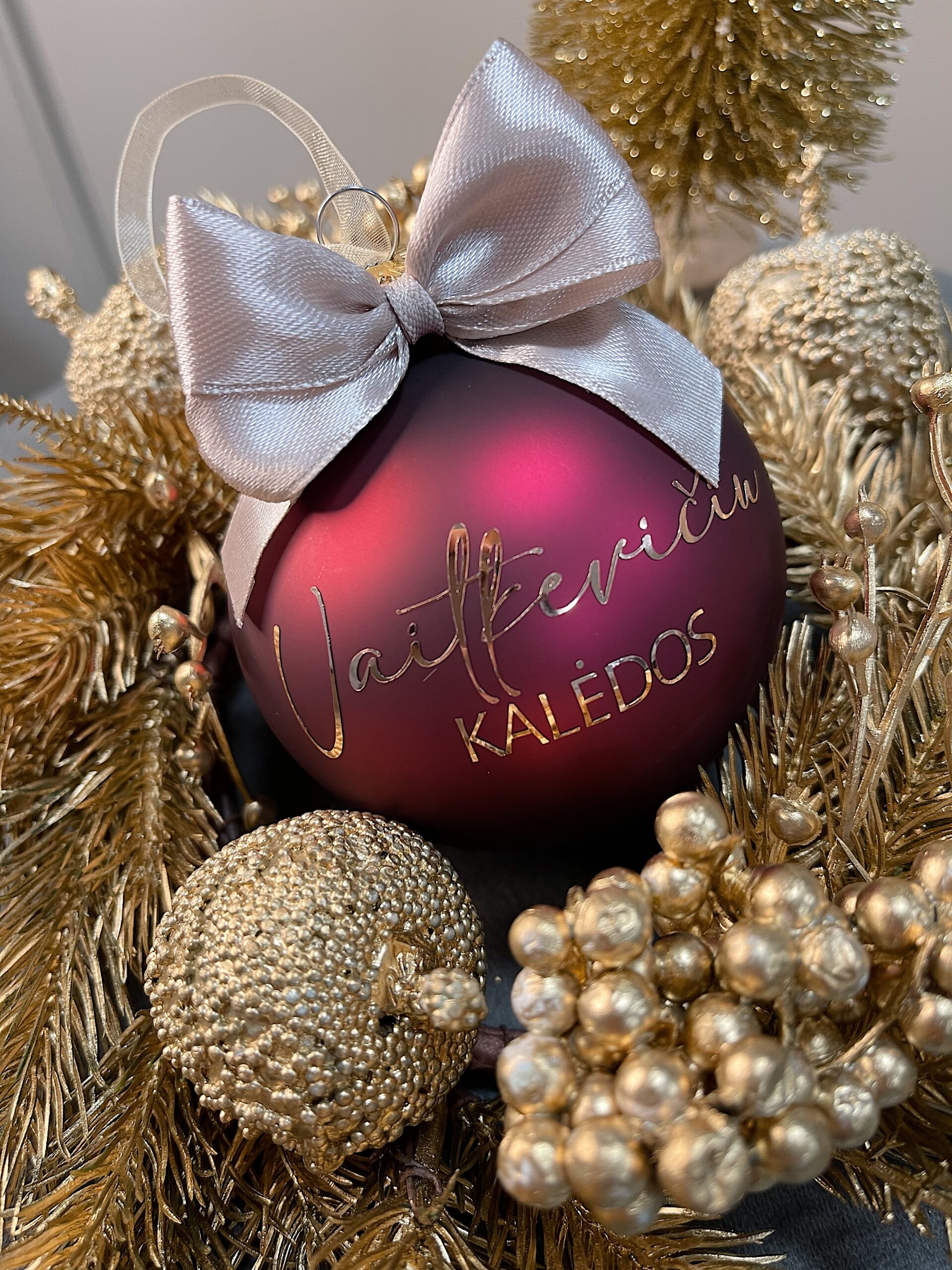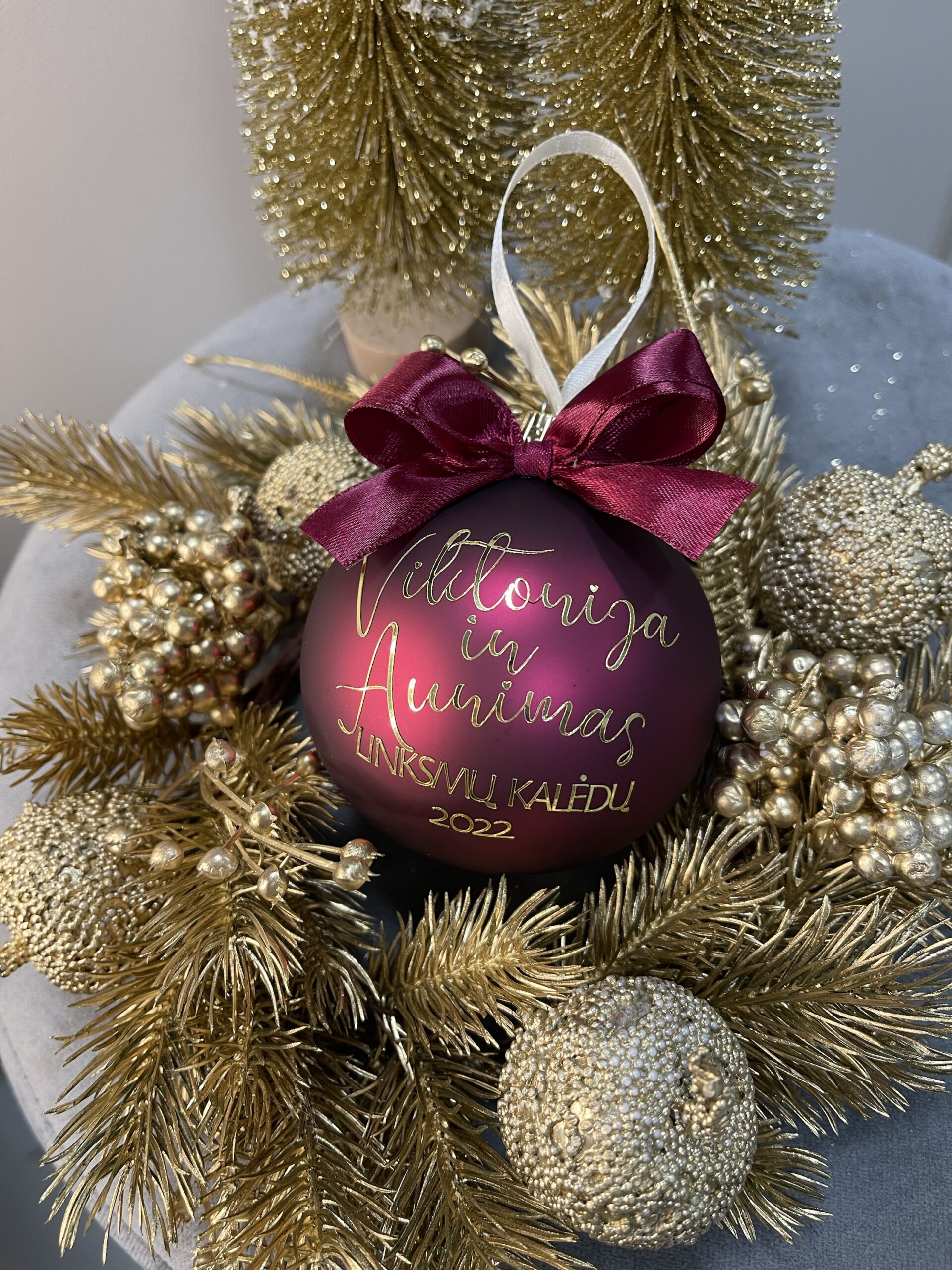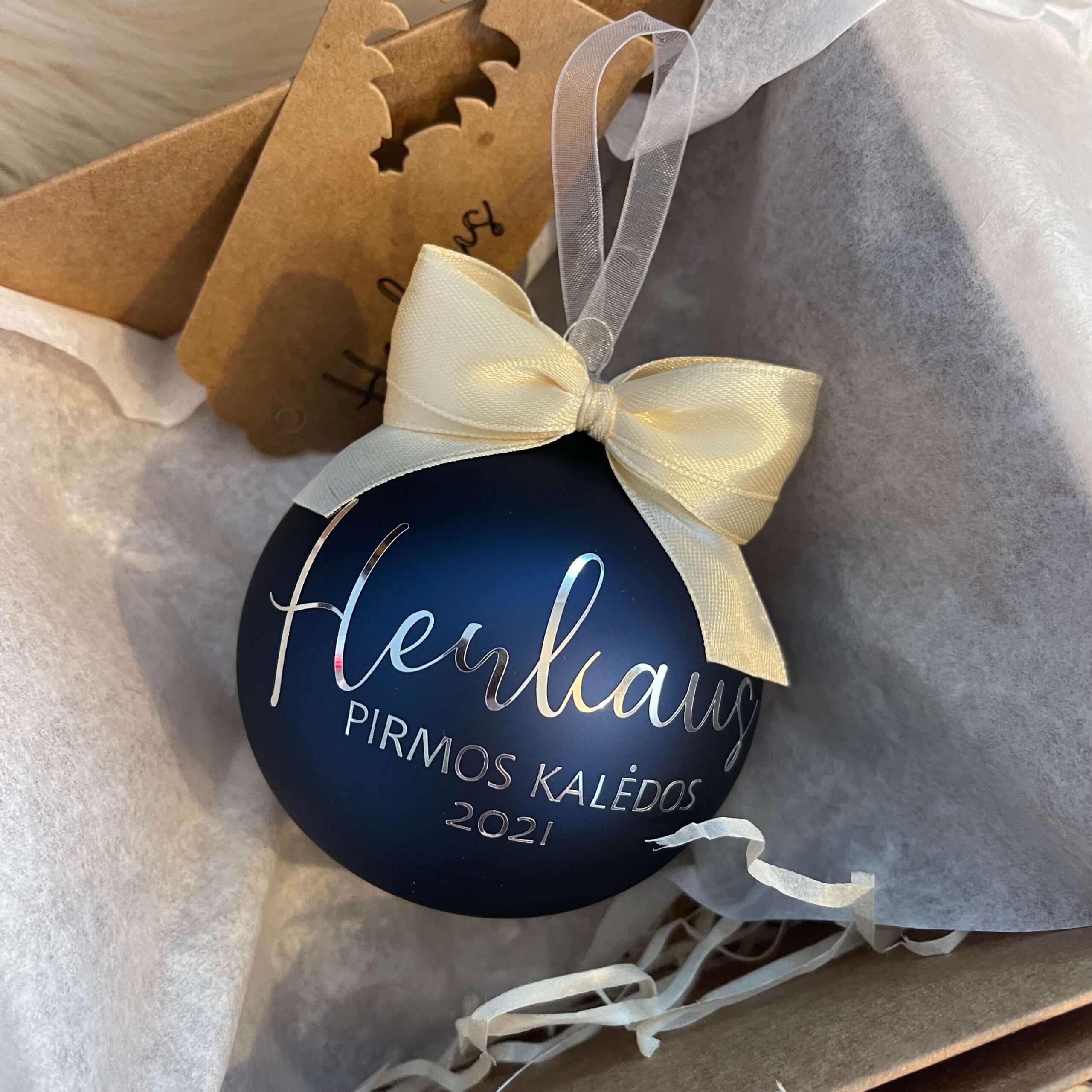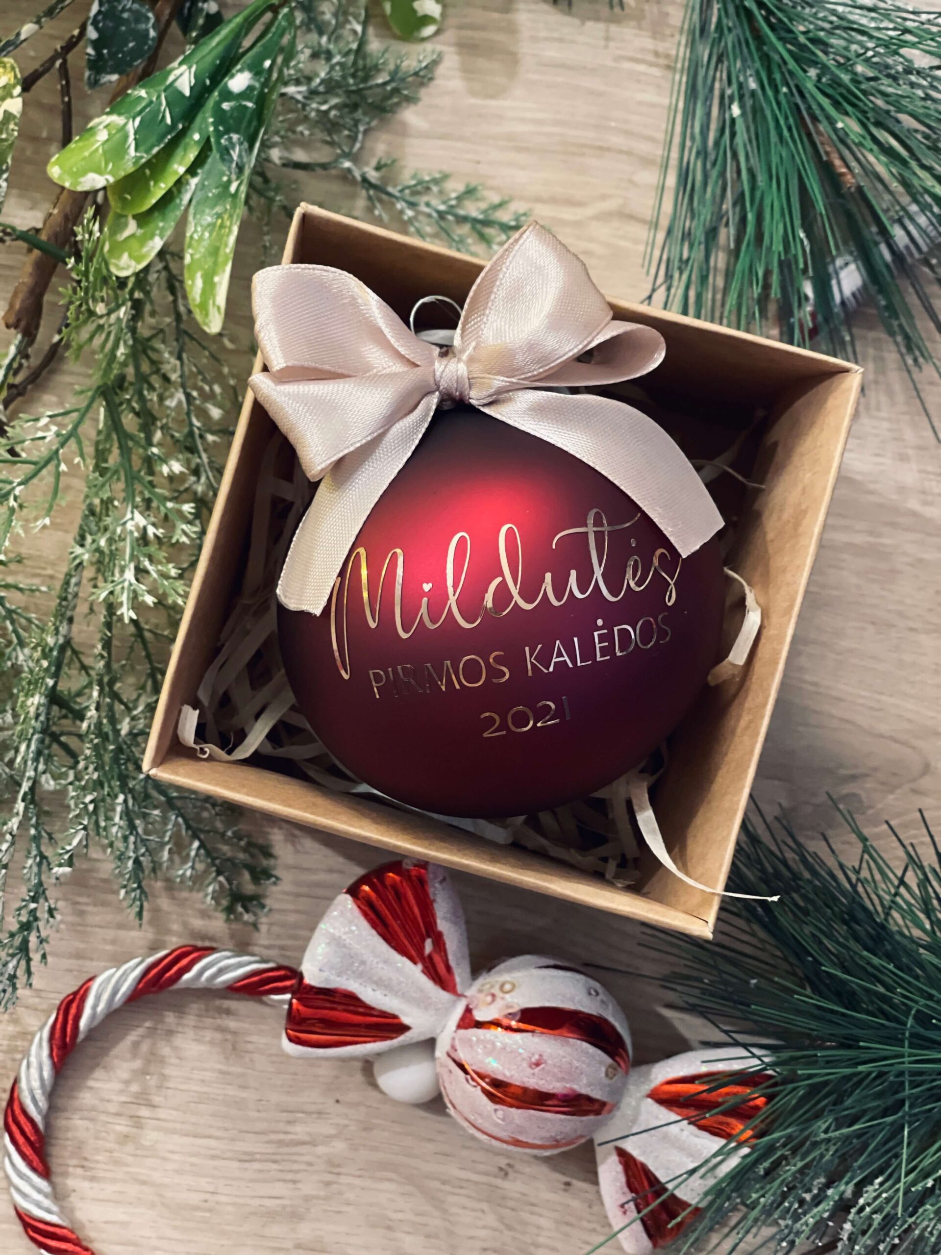 Personalizuotas kalėdinis žaisliukas su jūsų norimu užrašu iki 45 raidžių.
