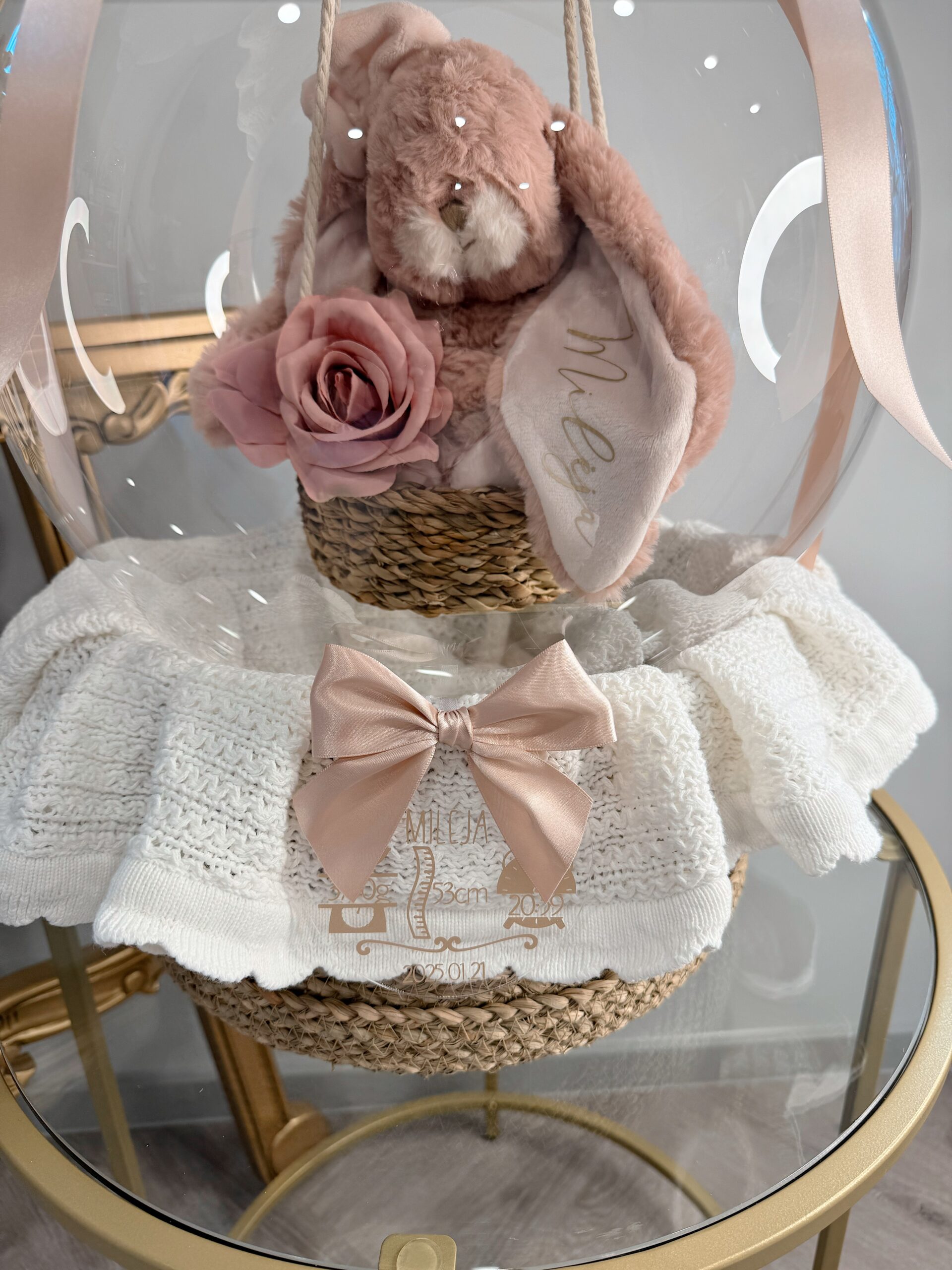 Minkštas Bukowski zuikutis, sėdintis ant supynės balione, tikrai bus įspūdinga ir miela dovana. Personalizuota ausytė su vaikučio vardu suteikia dar daugiau šilumos ir unikalumo. Balionas, pritvirtintas prie pinto krepšelio, kartu su minkštu pleduku puikiai užbaigia šią dovaną, paversdamas ją ne tik estetiška, bet ir praktiška. Tokia apgalvota ir meile pripildyta dovana tikrai paliks neišdildomą įspūdį ir sukels daug džiaugsmo!